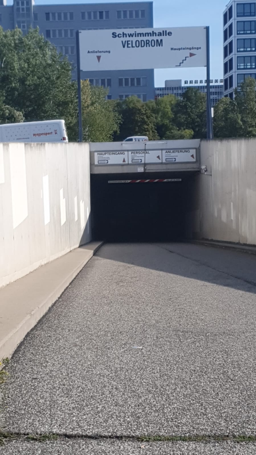 Der Zugang für alle Mannschaften zum Velodrom befindet sich auf der unteren Ebene unter den Bahngleisen der Berliner S-Bahn (siehe Google-Maps). Dort führen Treppen, Personenaufzüge und eine Fahrzeugrampe hinunter.