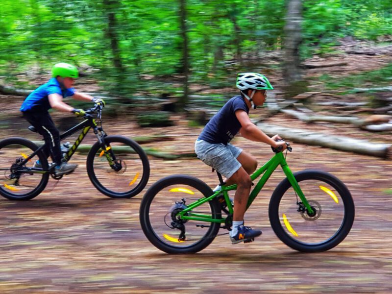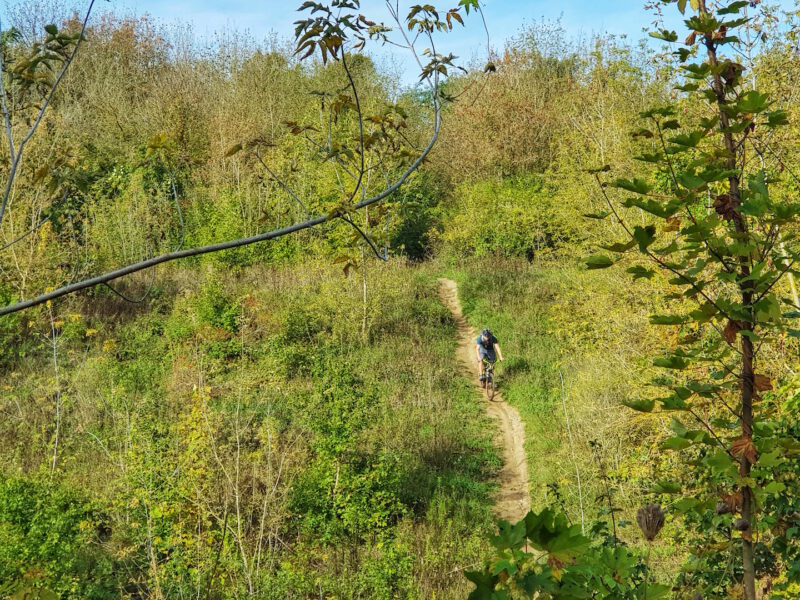 Teilnehmende sollten Erfahrung mit dem Fahren auf unebenen Waldwegen haben.